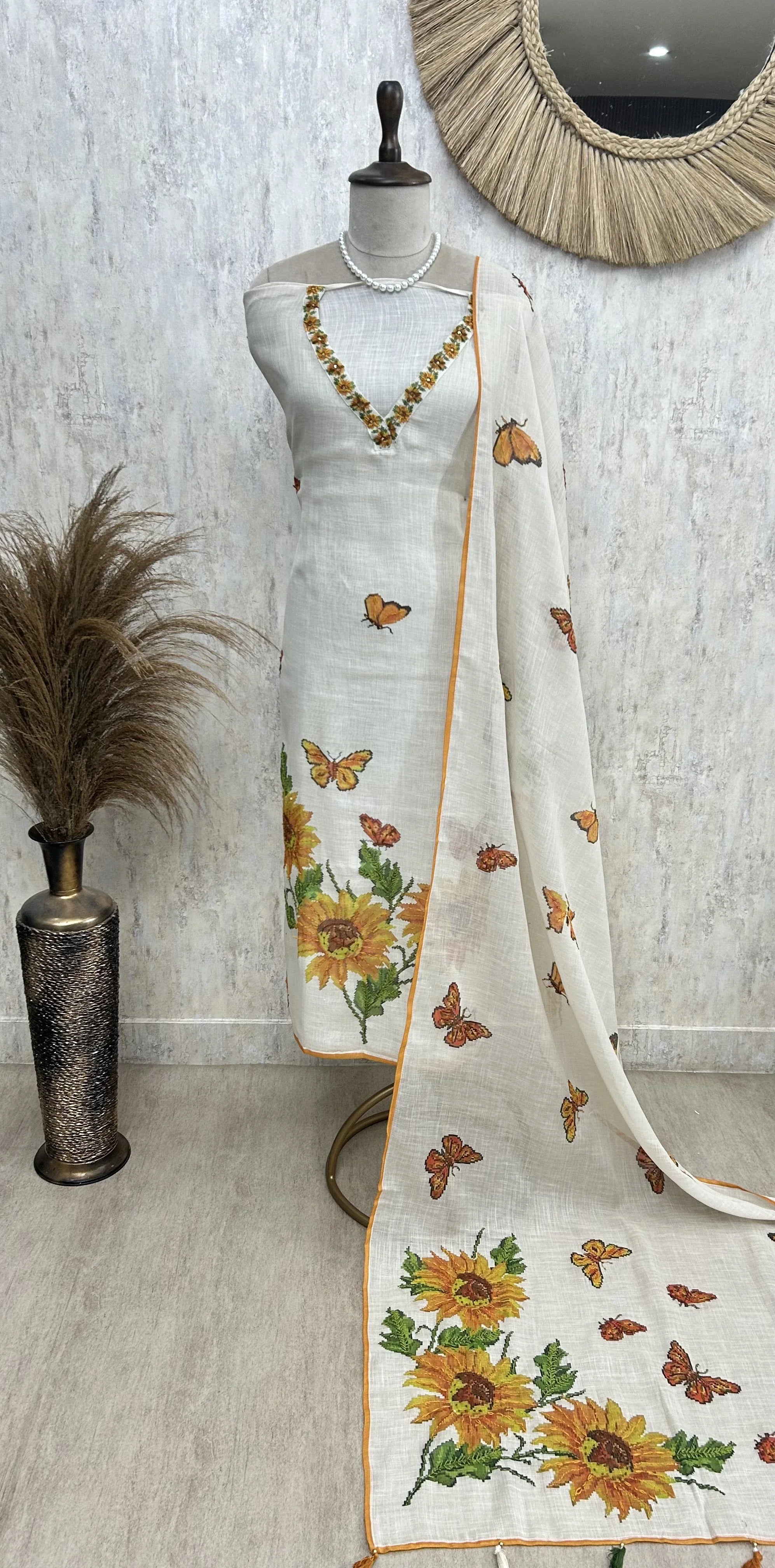 Step into effortless elegance with our Butterfly Print Jamdani Linen Unstitched Suit Set – a perfect blend of tradition and charm. Crafted in breathable linen Jamdani, this suit features delicate butterfly prints that bring a fresh, whimsical vibe to your ethnic style. Lightweight yet luxurious, it’s ideal for sunny days, festive gatherings, or simply when you want to feel graceful and comfortable.