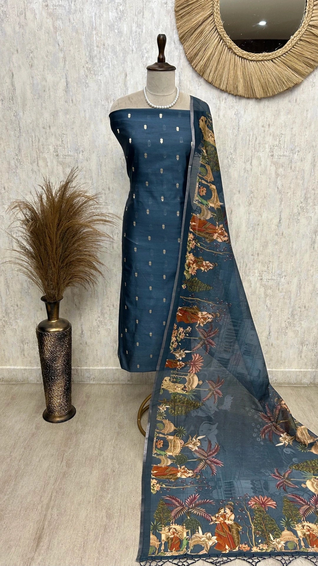 Chanderi Unstitched Suit Set With Printed Dupatta