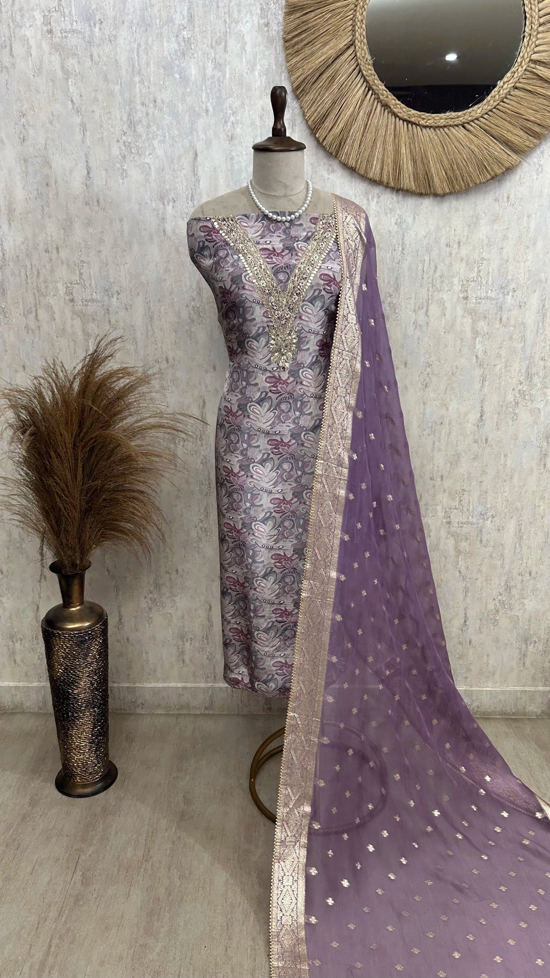 Elevate your ethnic wardrobe with the Maheshwari Panel Design Unstitched Suit Set. Crafted with expert precision, this set features traditional Maheshwari panel patterns that combine elegance and cultural heritage. Its unstitched fabric offers the flexibility to tailor the suit perfectly to your size and style preferences, ensuring a custom fit. Ideal for those who appreciate artisanal craftsmanship and timeless design, this set promises both comfort and sophistication for any occasion.