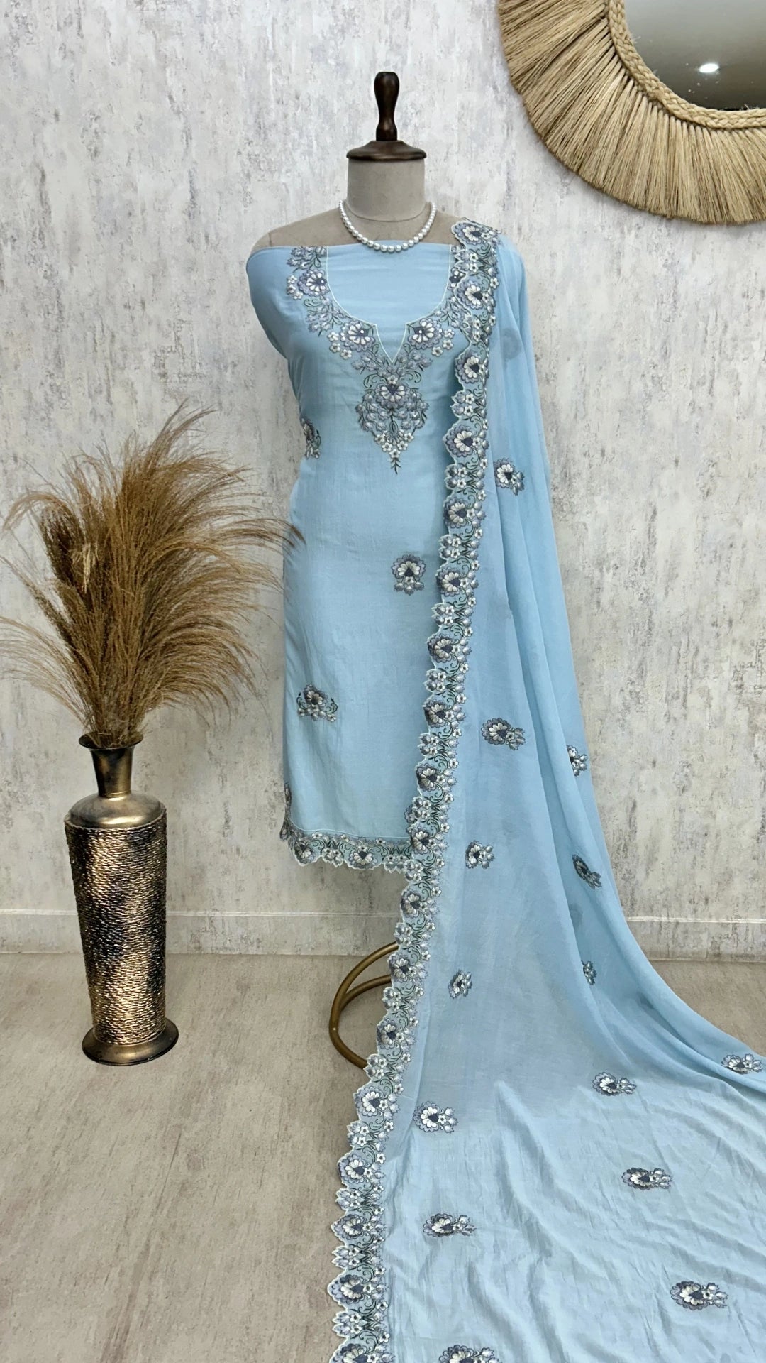 Step into timeless elegance with our Mul Unstitched Suit Set, adorned with delicate floral work that speaks of understated luxury. Crafted from soft and breathable mulmul cotton, this suit set is perfect for the woman who values comfort without compromising on style.
