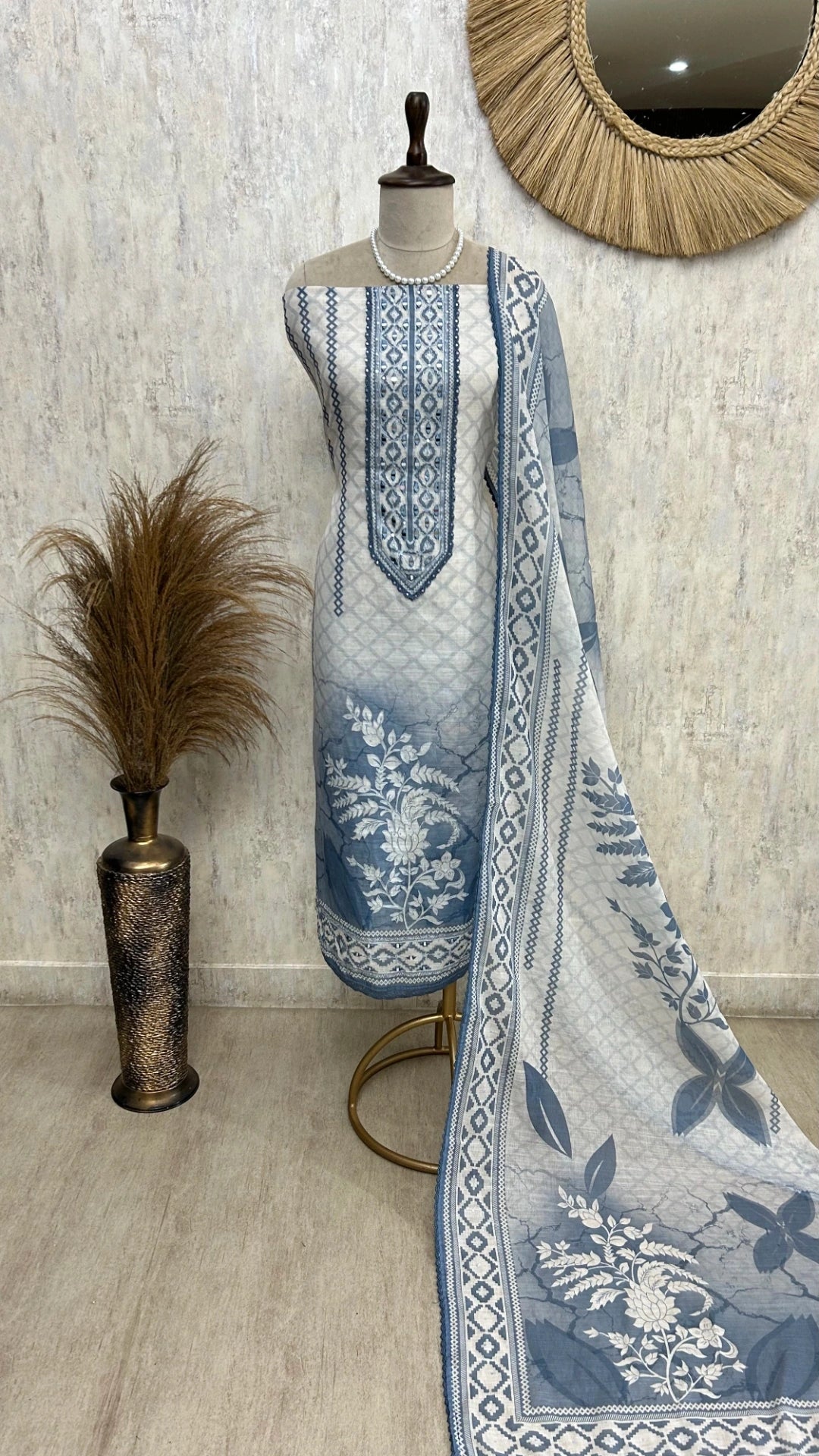Experience the perfect blend of comfort and style with this Printed Maheshwari Unstitched Suit Set. Crafted from breathable Maheshwari fabric, it offers a lightweight feel ideal for warm weather. The unstitched design allows you to customize the fit and tailoring to your preference, ensuring a personalized look. Featuring elegant prints, this suit set is versatile for both casual and semi-formal occasions, making it a valuable addition to your wardrobe.