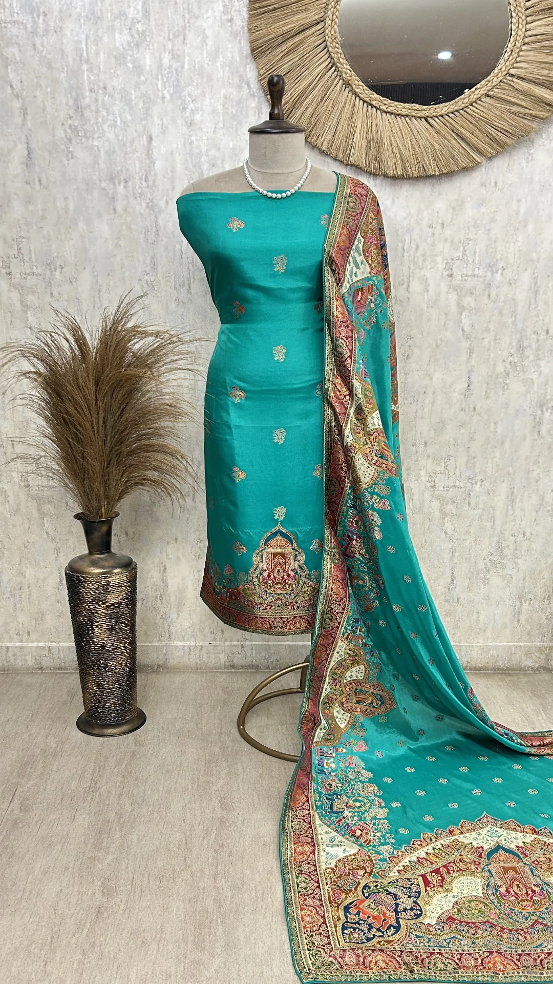 Elevate your wardrobe with this sophisticated unstitched suit in a striking royal teal hue. Crafted for the discerning wearer, this three-piece ensemble offers complete creative freedom—customize the fit, silhouette, and finishing details to match your personal style and body proportions. The rich, jewel-toned fabric drapes beautifully and works seamlessly for both festive occasions and refined everyday wear. Perfect for those who value bespoke tailoring and timeless elegance. Pair with your choice of embellishments or keep it understated for a modern aesthetic.