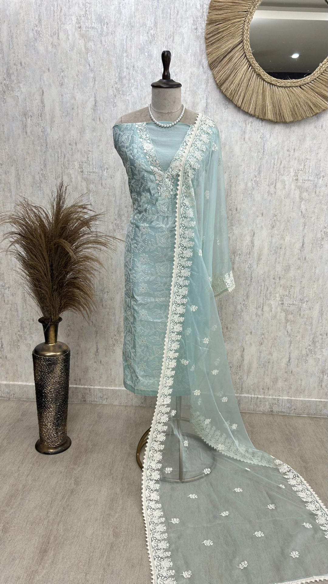 Step into elegance with our Machine Thread Work Maheshwari Unstitched Suit Set, a perfect blend of tradition and contemporary charm. Crafted from premium Maheshwari fabric, this suit set features intricate machine thread work that enhances its grace and sophistication. Known for its lightweight texture and rich appeal, Maheshwari fabric is ideal for both casual and festive occasions.