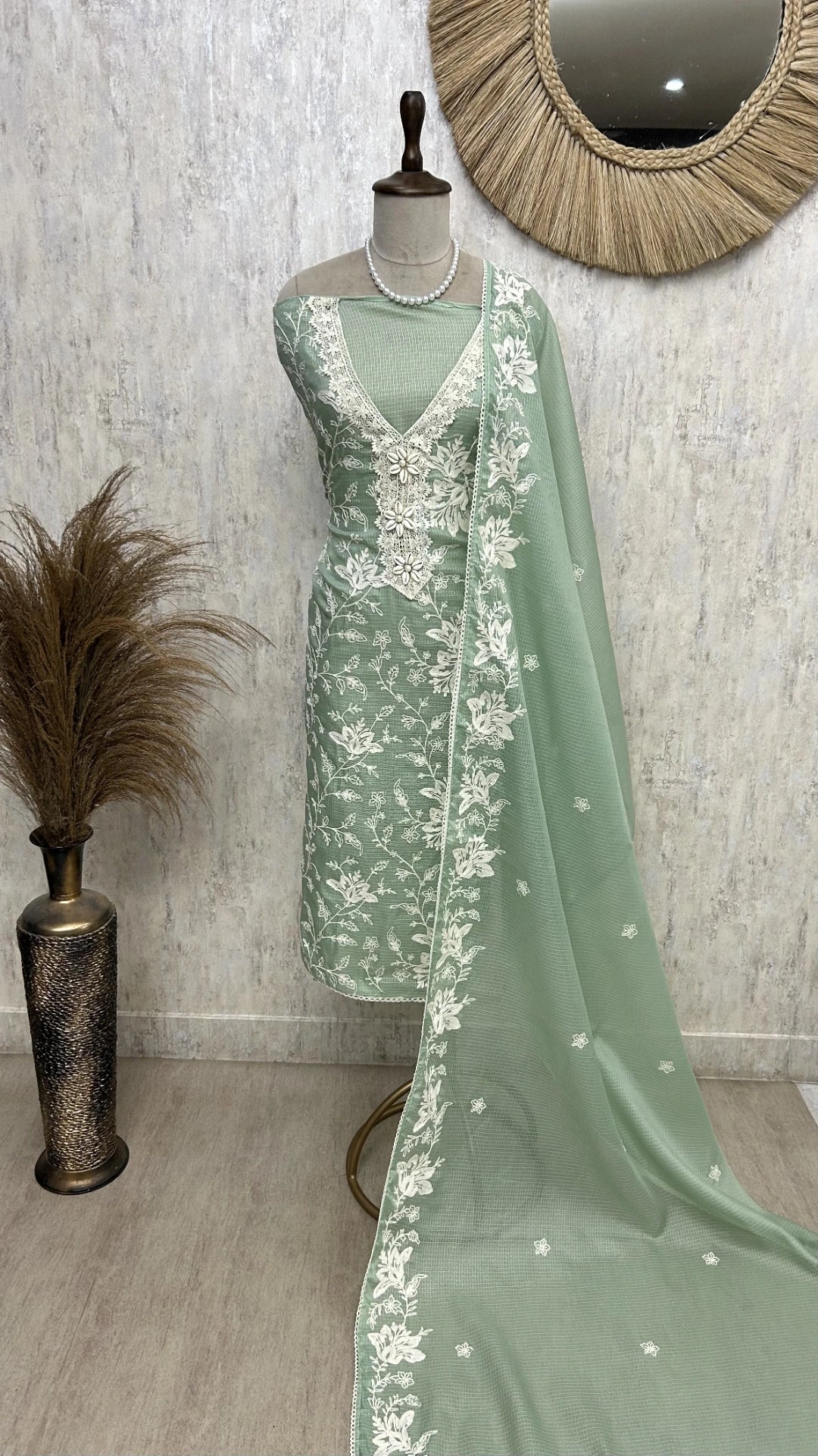 Elevate your ethnic wardrobe with our Thread Embroidered Kota Suit Set, a timeless blend of elegance and lightness. Crafted in soft, breathable Kota fabric, this unstitched set features intricate thread embroidery that adds a graceful charm without the heaviness of zari or sequins.