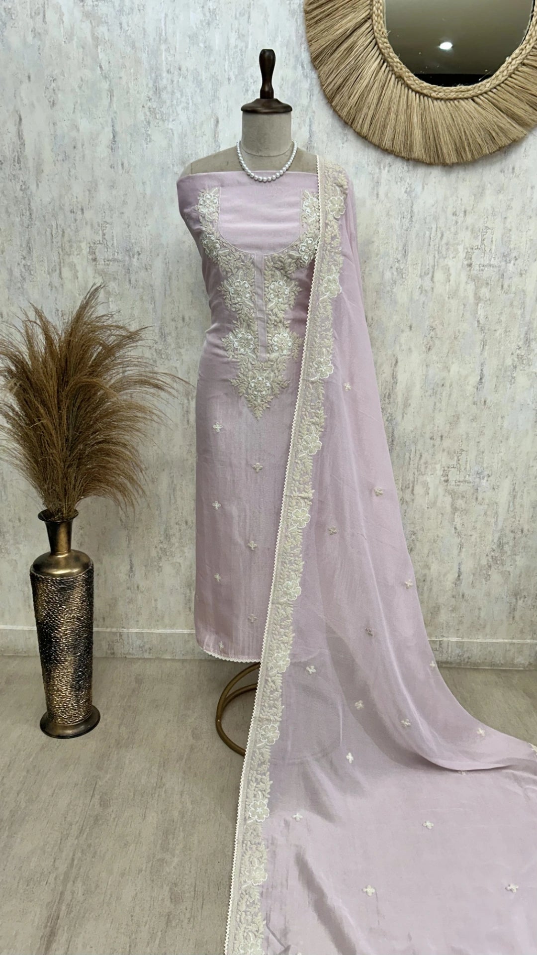 Elevate your ethnic wardrobe with this elegant Tissue Linen Unstitched Suit Set, designed to blend tradition with a touch of contemporary charm. Crafted from premium tissue linen, this fabric offers a subtle sheen and lightweight feel — perfect for festive and semi-formal occasions.