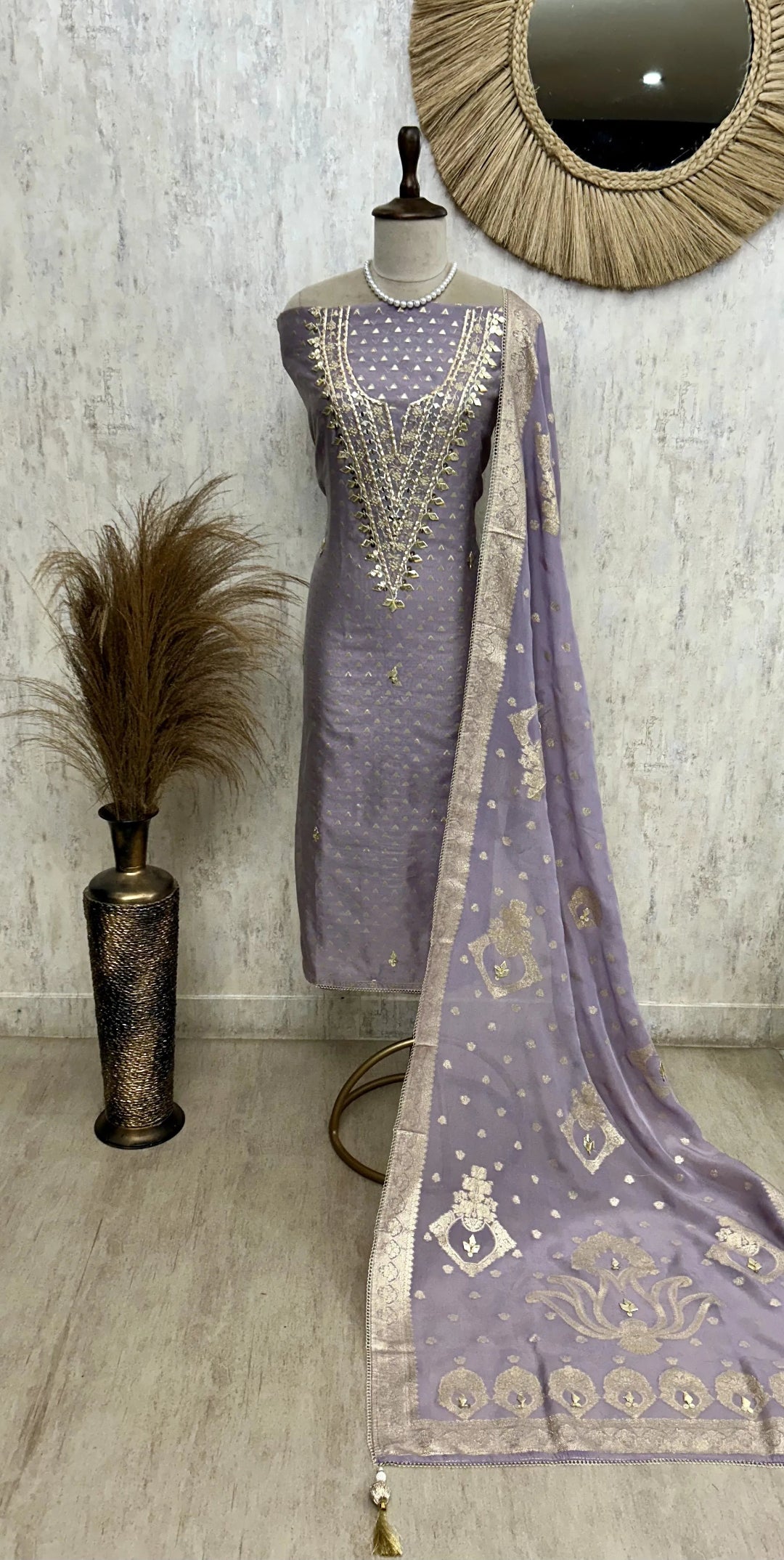 This unstitched Maheshwari suit set offers traditional elegance with the flexibility to tailor it to your exact fit. Crafted from high-quality fabric, it includes a beautifully detailed body material and a sheer organza dupatta that adds a subtle, graceful touch. Ideal for those who appreciate classic Indian textiles, this set combines timeless design with modern comfort, making it perfect for any occasion where refined style is desired.