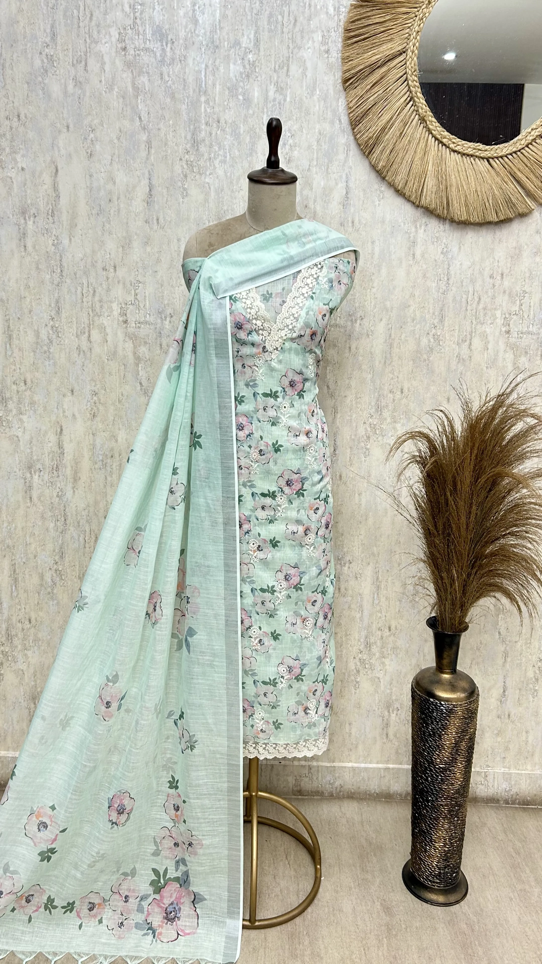 Embrace timeless elegance with our Blush Floral Serenity Unstitched suit. This exquisite ensemble features delicate floral patterns in soft blush tones, perfect for creating a personalized look that reflects your unique style. The unstitched format allows you complete creative freedom—customize the fit, length, and silhouette to match your preferences and body measurements. Crafted with quality fabric that drapes beautifully, this suit is ideal for festive occasions, celebrations, or everyday sophistication. Whether you prefer traditional tailoring or contemporary cuts, the versatile design adapts to your vision. Perfect for those who value both artistry and individuality in their wardrobe.