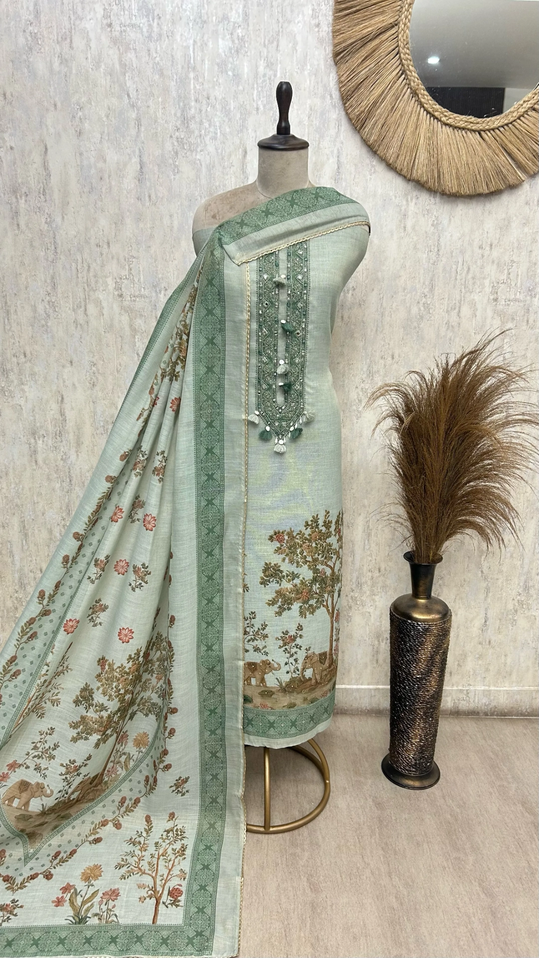 Embrace understated elegance with this unstitched suit featuring subtle charm design elements. Perfect for creating a personalized look, this fabric collection offers versatility for both casual and formal occasions. The refined patterns and quality material allow you to tailor the suit to your exact preferences and measurements. Ideal for those who appreciate timeless style with a modern twist. Customize your fit and make it uniquely yours with this premium unstitched suit.